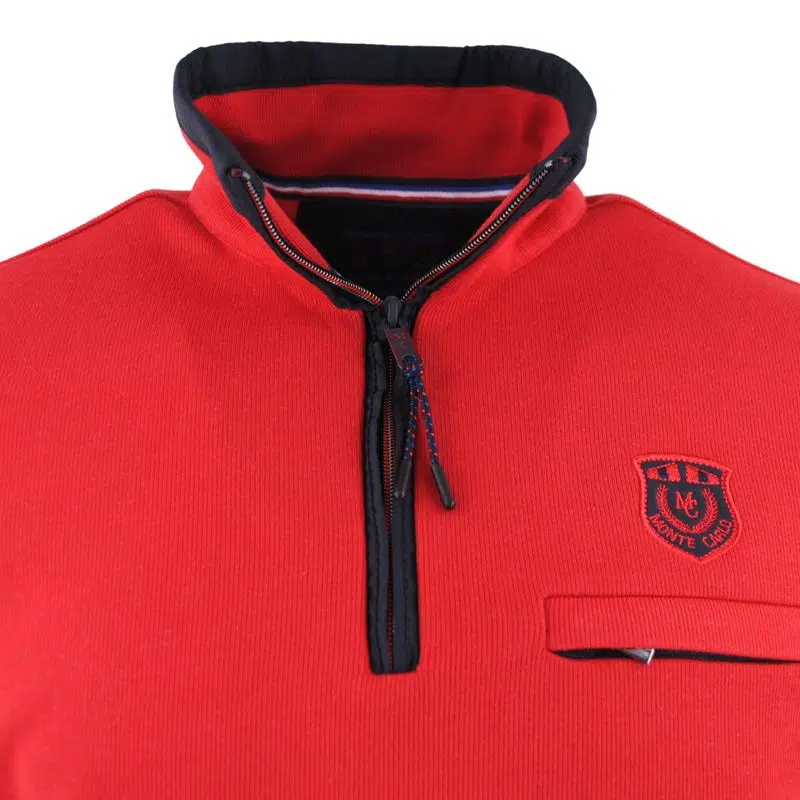 MONTE CARLO vous propose son classique pull sweat coton uni en couleur rouge. Un pull de très belle qualité avec des finitions discrètes qui donnent beaucoup de style comme l’écusson sur la poitrine, la poche poitrine zippé et le renfort sur le bord du col.