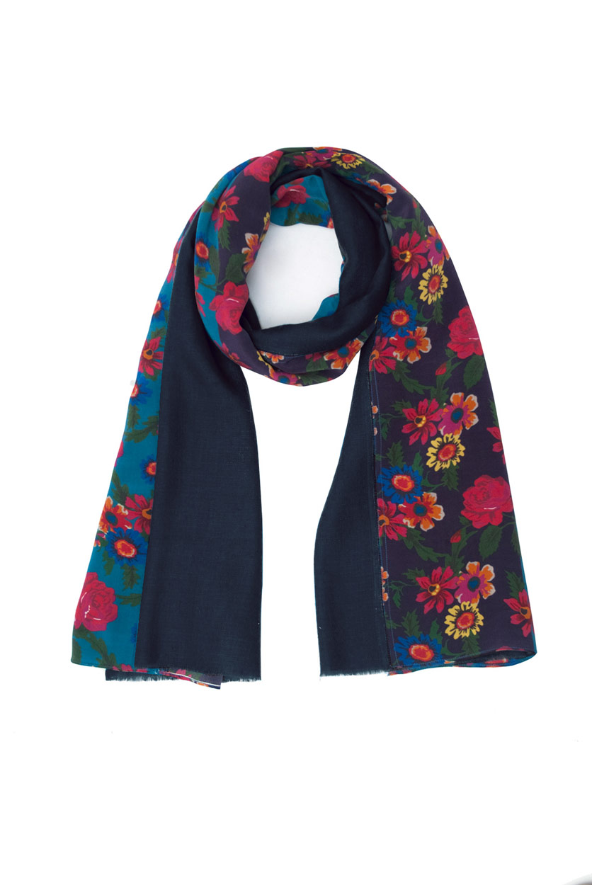 The Najda pashmina is hand woven cashmere by Kashmiris artisans with printed silk crepe.  We add a luxury touch with a handmade embroidery instead of stitching them together. It’s a unique handwork that is used in Haute Couture. We decided to apply this elevated technique to our accessory bi-material collection.