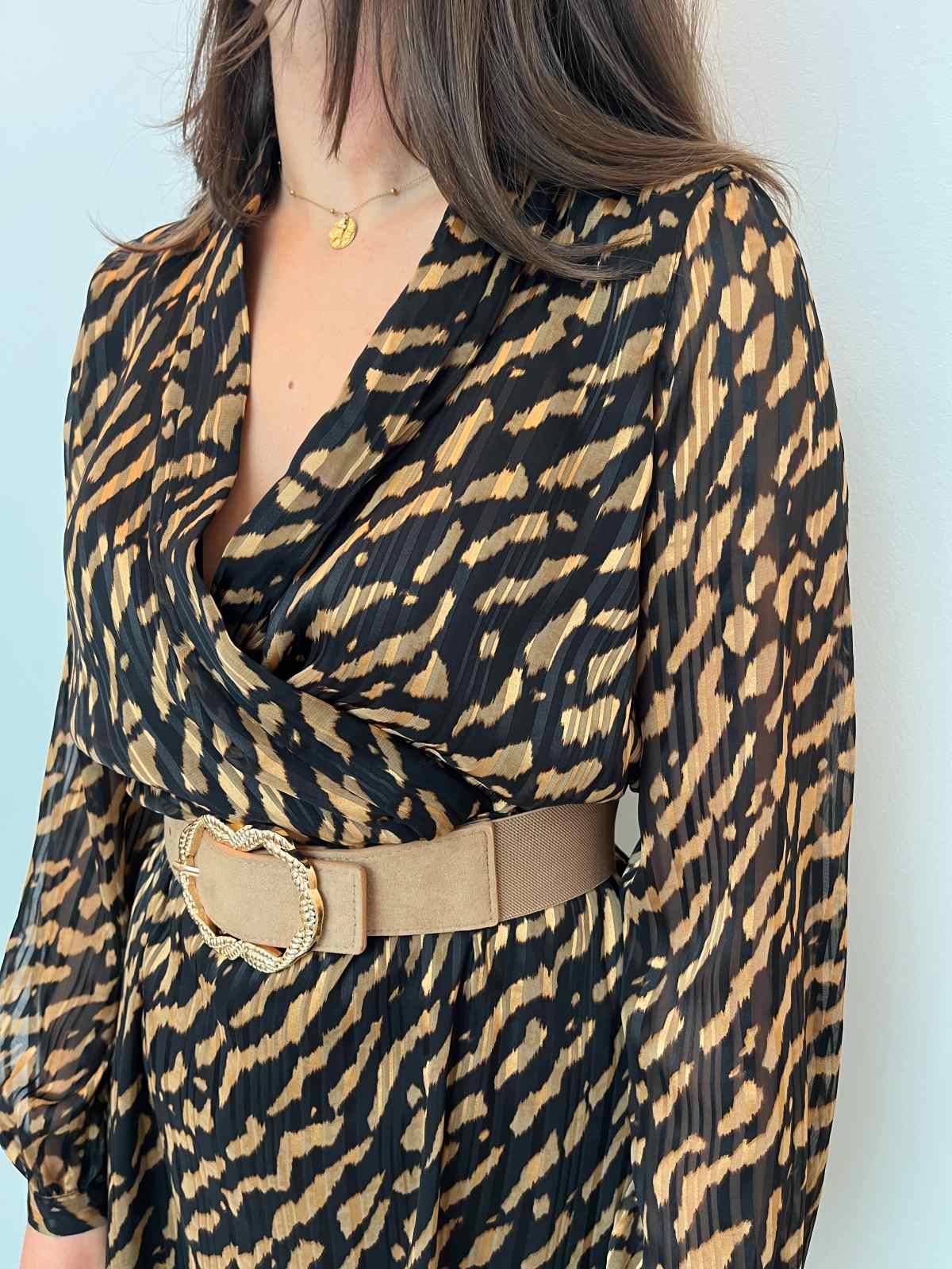 Affirmez votre style avec cette robe imprimée noir, camel et marron signée Vero Moda, parfaite pour un look chic et élégant.