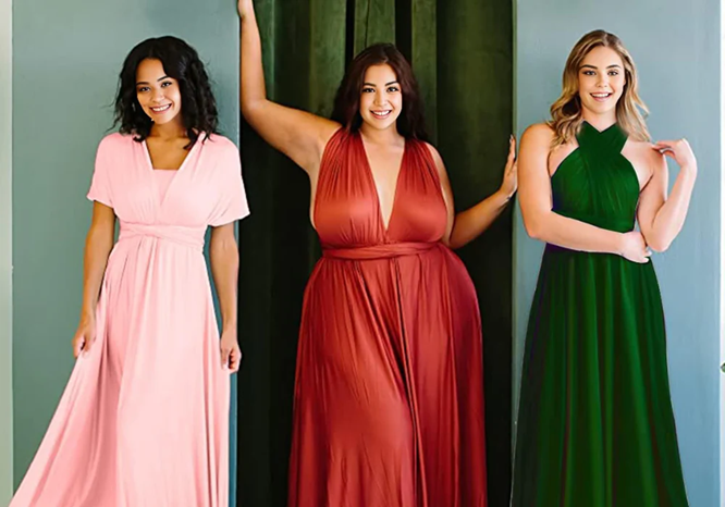 La robe multi-positions offre à vos demoiselles d’honneur la possibilité de créer un look unique tout en restant coordonnées. Disponible en plusieurs couleurs et deux tailles uniques, elle permet de choisir des teintes harmonieuses allant des plus foncées aux plus claires. Grâce à sa ceinture élastique, cette robe s’adapte à toutes les morphologies, du 36 au 52. Elle peut être portée à la taille, sous la poitrine, ou sur les hanches. Idéale même pour les femmes enceintes.