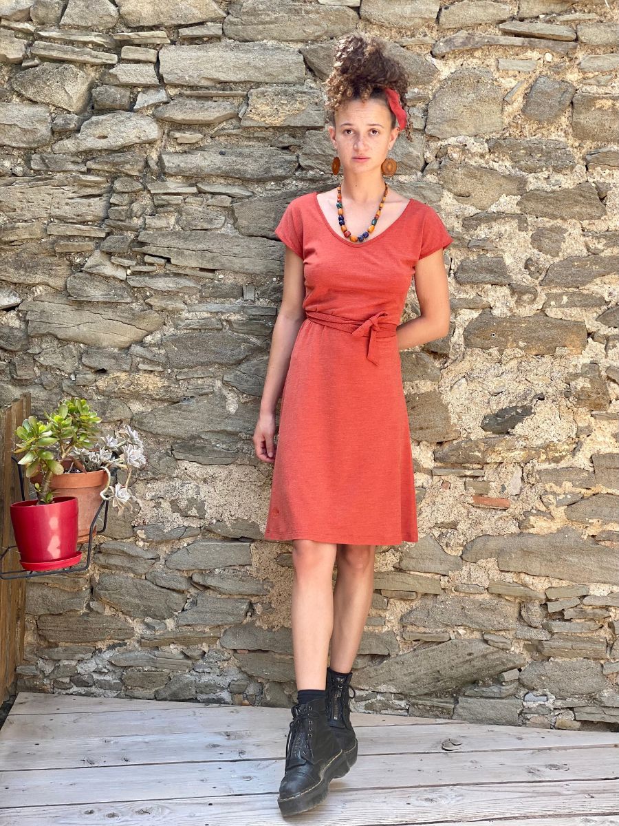 Notre robe femme en laine mérinos bio et soie emblématique et votre préférée ! Simple, fluide, à porter avec ou sans ceinture, elle met en valeur toutes les silhouettes. Livrée avec une ceinture.
