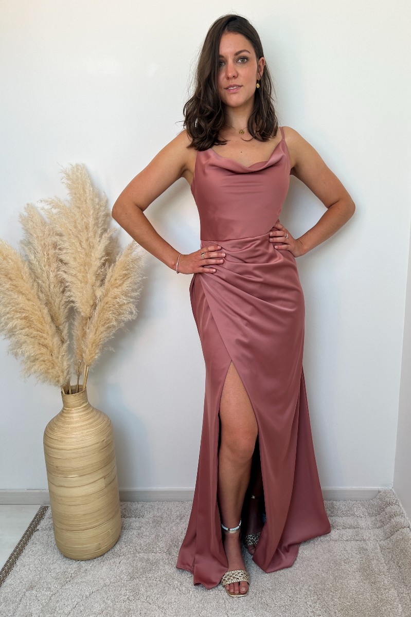 Robe Longue Sirène Vieux Rose – Élégance et Raffinement