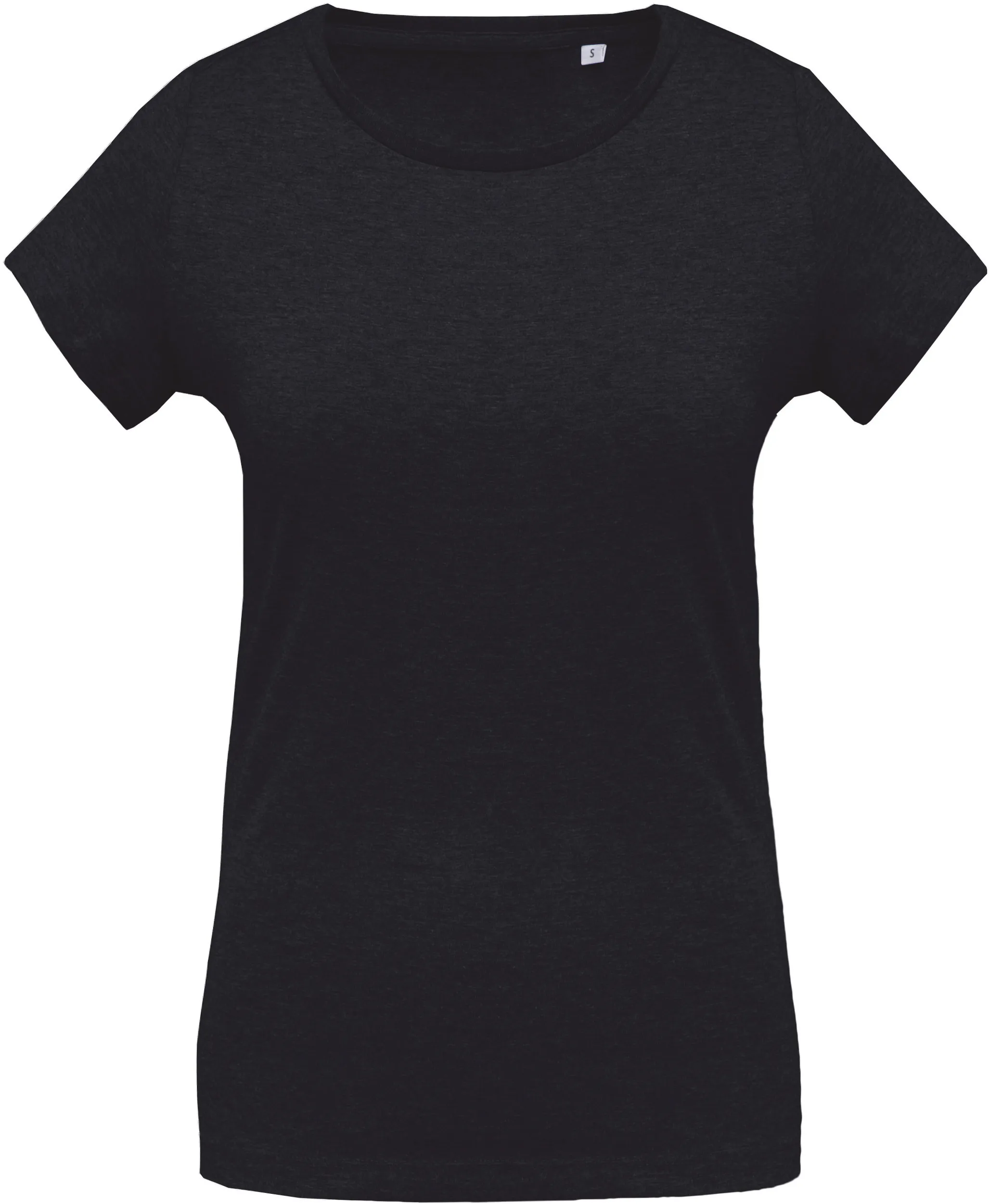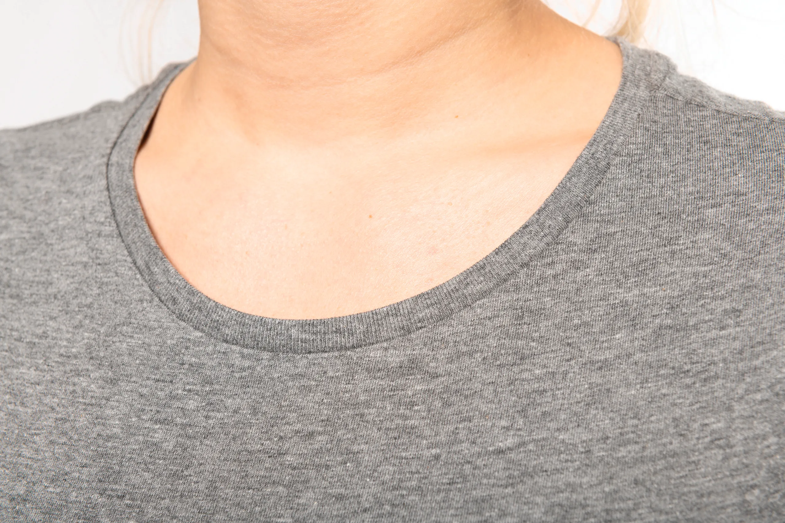 Coloris unis : 100% coton biologique. Coloris Wine Heather, Ocean Blue Heather et French Navy Heather : 80% coton biologique / 20% polyester. Coloris Grey Heather : 70% coton biologique / 30% viscose. Coupe mode et cintrée. Encolure ronde en bord-côte. Bande de propreté ton sur ton à l’encolure. Finition double aiguille bas de manches et bas de vêtement. Pas d’étiquette de marque au col, uniquement une puce de taille pour faciliter la personnalisation. Certifié STANDARD 100 by OEKO-TEX®N° CQ1007/7, IFTH.