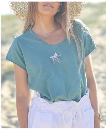 T-shirt manches courts en 100 % coton avec stass étoile