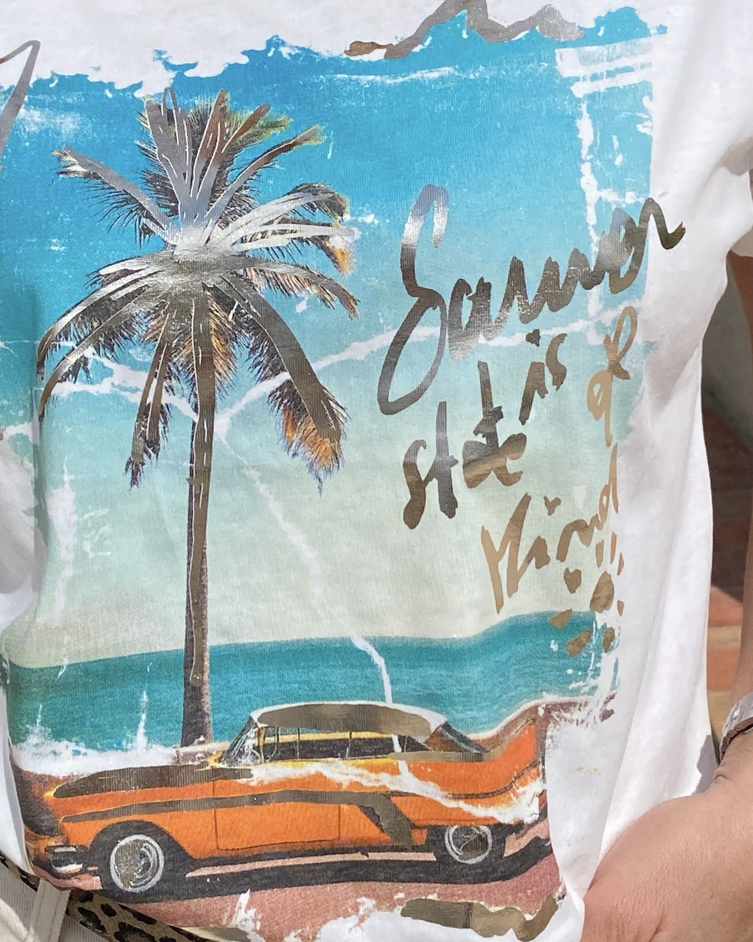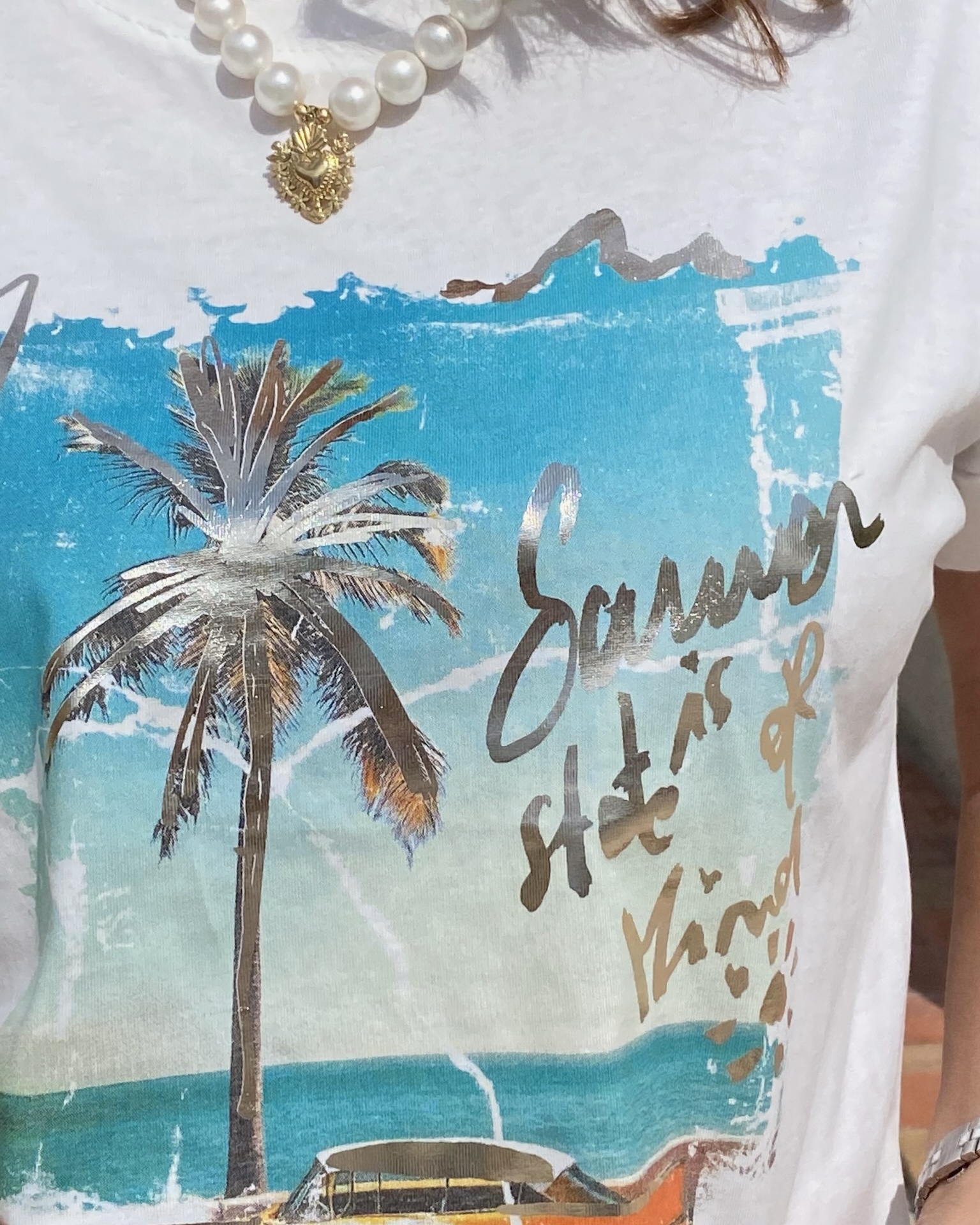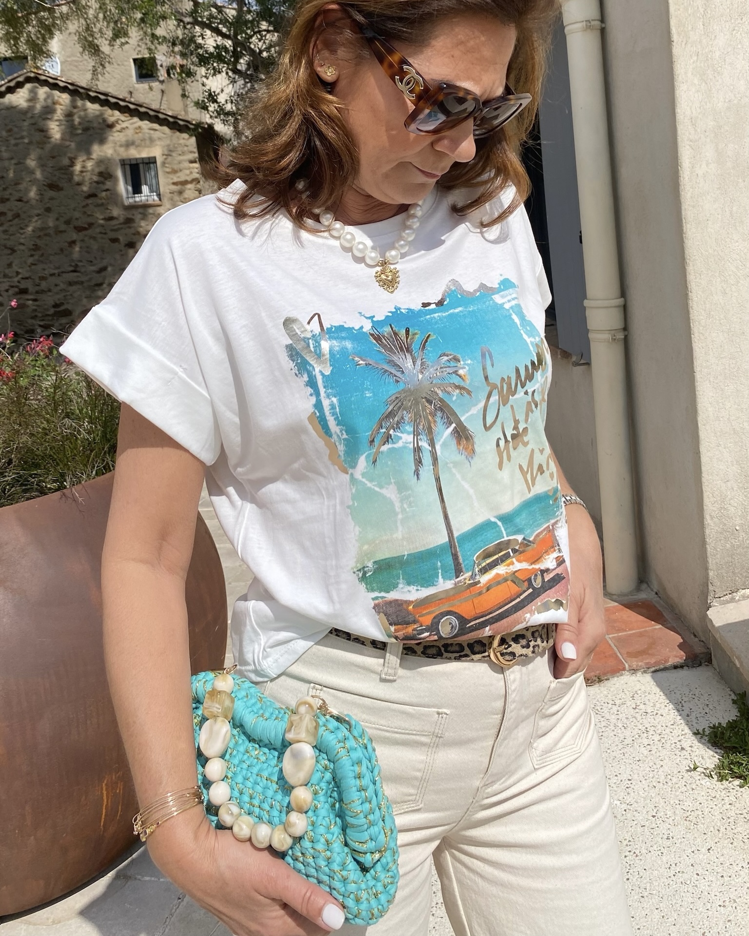 -Tee-shirt manches courtes avec revers blanc à col rond.