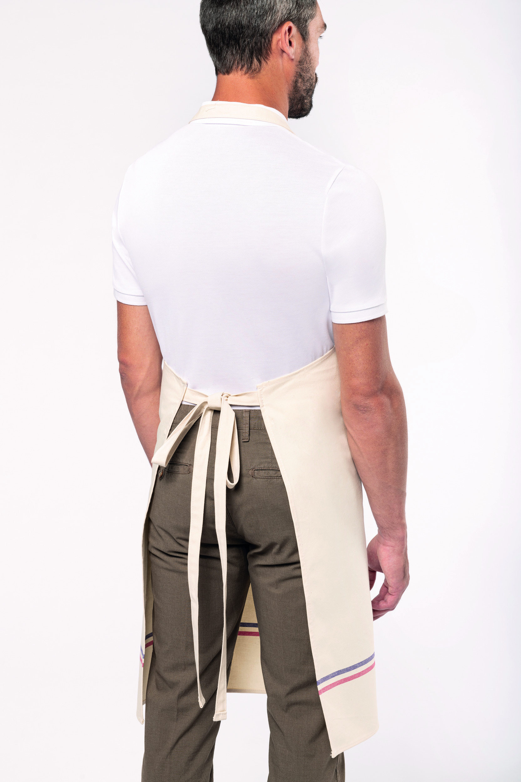 100% coton. Lavage domestique à 60°C. Longueur du tablier ajustable grâce à une boucle de réglage en métal au niveau du cou. Grande poche à l’avant. Motif 2 bandes dans le bas du tablier. Lanière réglage col . Étiquette tissée drapeau France sur la poche avant. Dimensions : H 91 cm x L 78 cm. Poche : H 21 cm x L 31 cm. Label “Origine France garantie. Fabriqué en Bretagne”