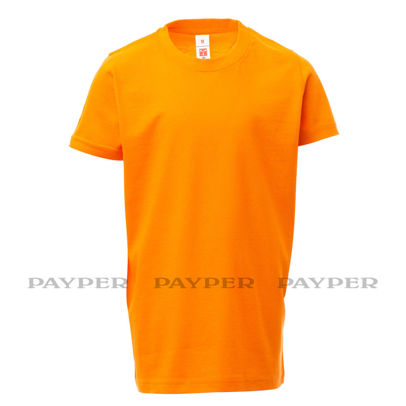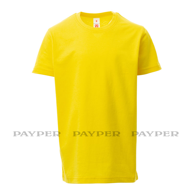 Tee-shirt pour enfant, encolure ras le cou, manches courtes, col en bord côtes mixte spandex de 1,5 cm avec couture rabattue sur le devant, structure tubulaire.