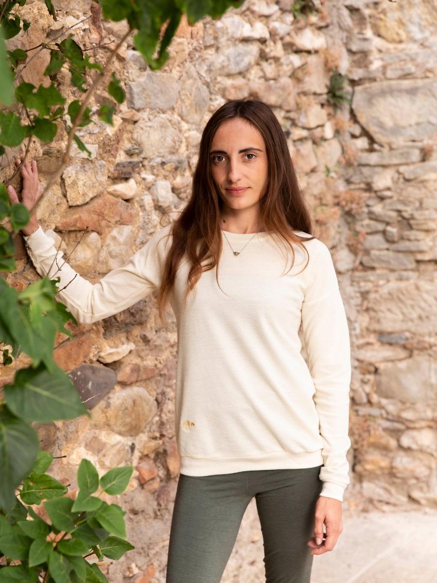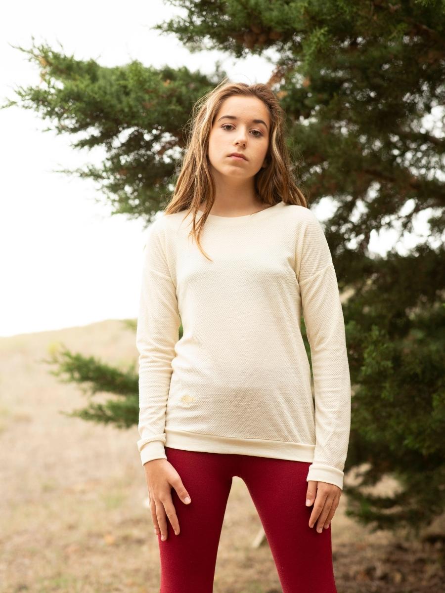 Le nouveau tee-shirt manches longues effet sweat, en nid d’abeille pour une touche chic et habillée !