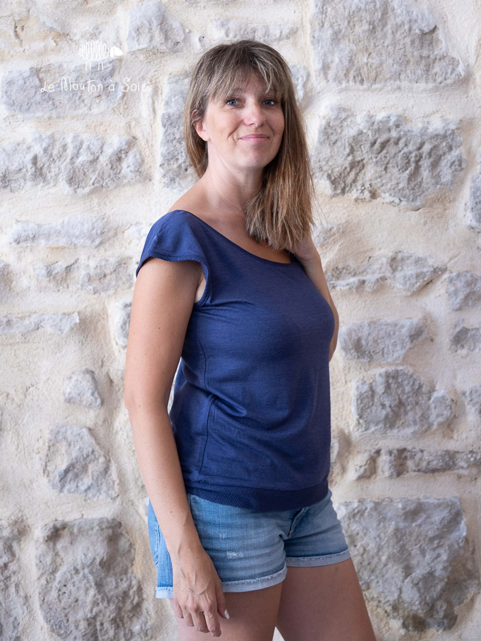 top Diagonal asymétrique femme laine mérinos bio et soie