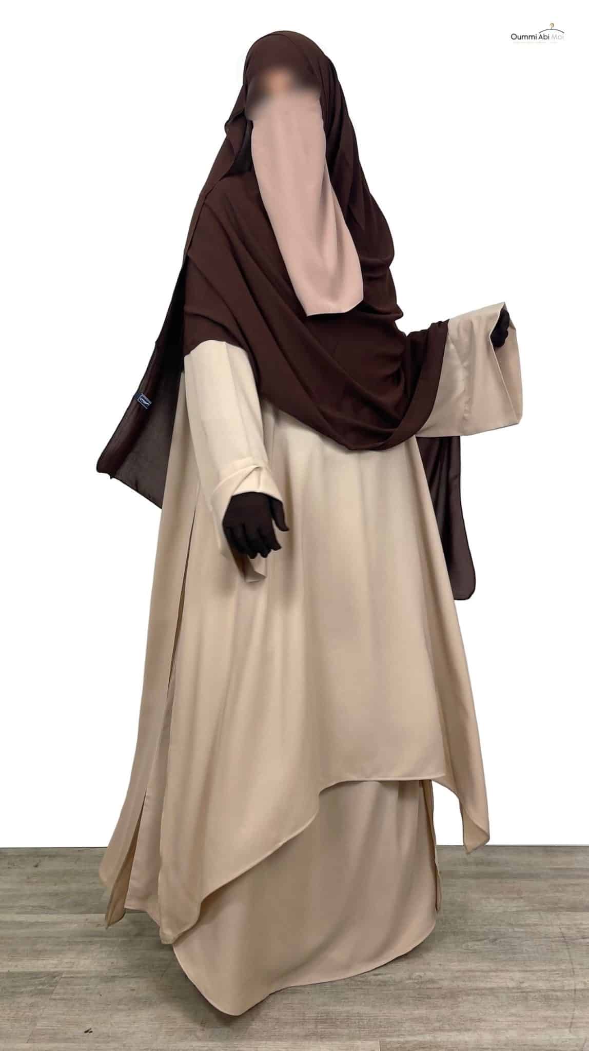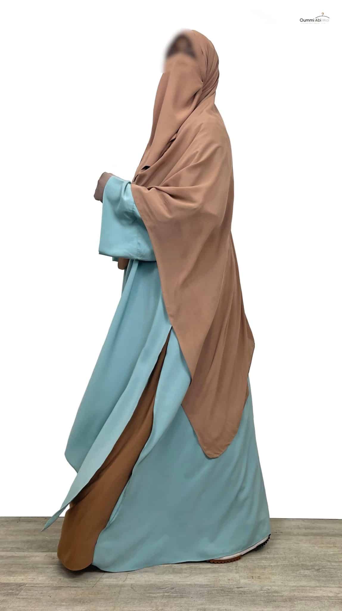 - Vous pouvez la porter sur votre Abaya ou votre Jilbab afin d’ajouter une épaisseur à votre tenue pour plus de couvrance.