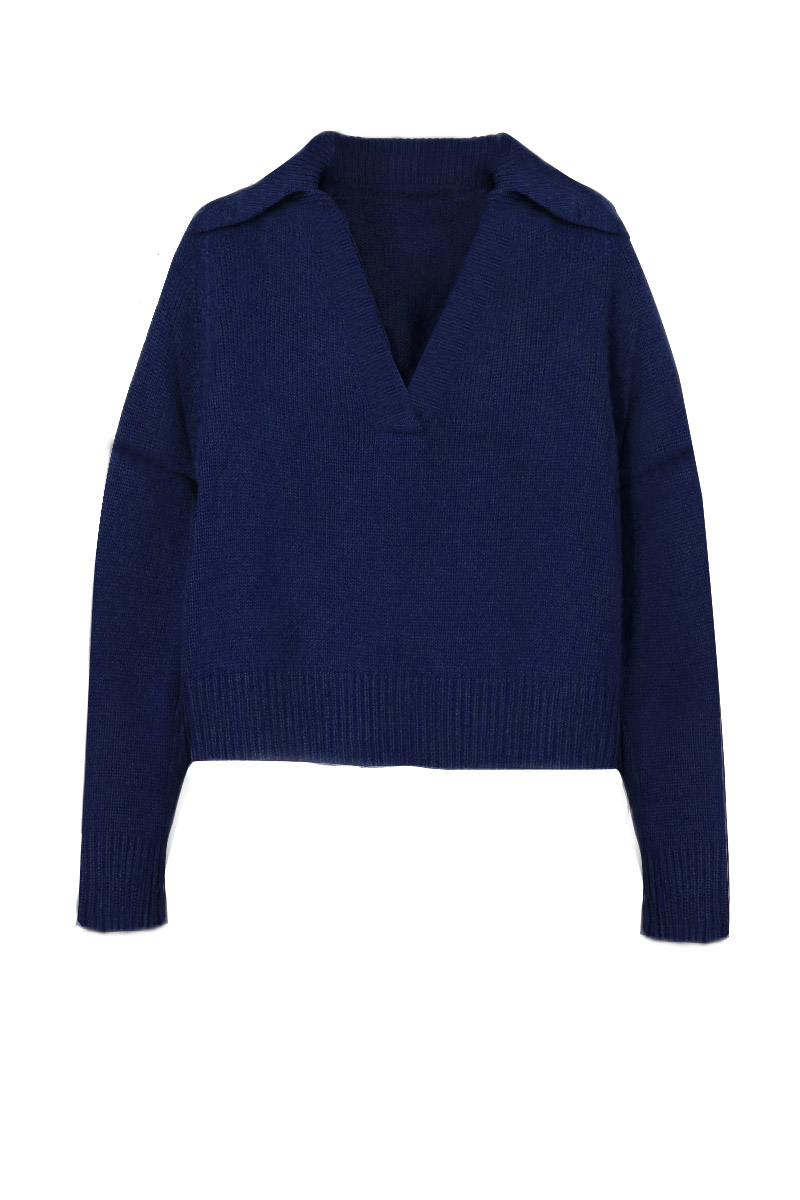The Valeria sweater is spun from sustainable cashmere – each fiber is carefully selected for its fineness and quality. Slightly cropped, it has a polo-style Milano knit collar and ribbed trims that define the relaxed shape.