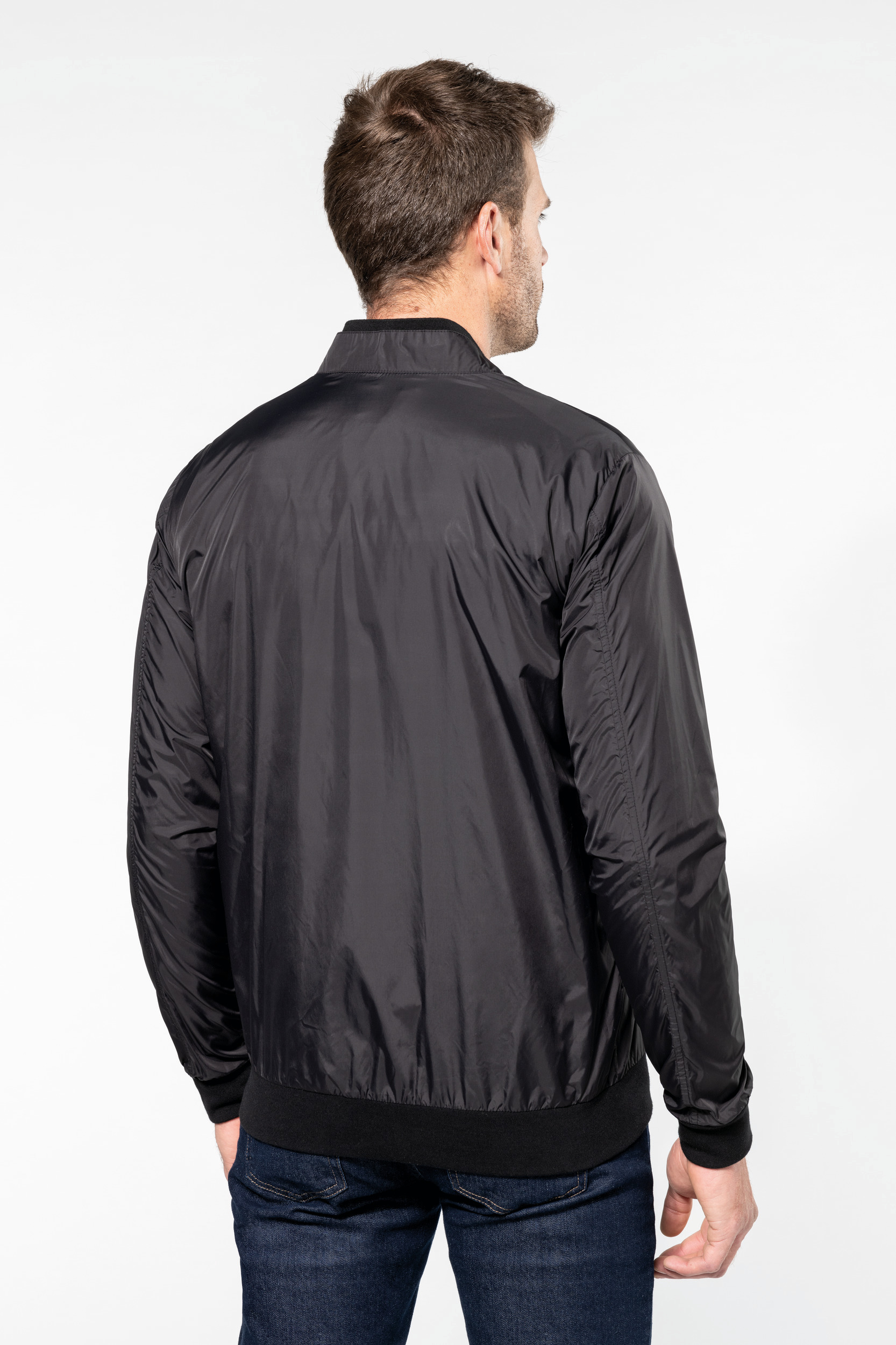 100% polyamide. Fermeture zippée avec zip métal, bouton pression col. Poches latérales fermeture bouton pression. Double col avec col intérieur en Rib 1×1, bas de manches et bas de veste resserrés Rib 1×1 (97% polyester / 3% élasthanne). Loop à l’intérieur de l’encolure afin de pouvoir accrocher la veste. Couture intérieure des manches et de l’emmanchure bordée pour une belle finition. Doublure intérieure volante en haut du dos avec patch pour faciliter la personnalisation. Zip de personnalisation intérieure côté poitrine. Pas d’étiquette de marque, uniquement une puce de taille pour faciliter la personnalisation.