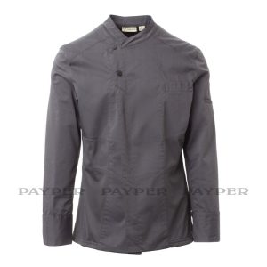 Veste de cuisine homme à col mao, réalisée en twill de coton et Lycra® T400®, avec d’excellentes propriétés élastiques et respirantes, et avec un tissu en mesh confortable sur le dos, les manches et la taille, pour permettre une respirabilité maximale.
