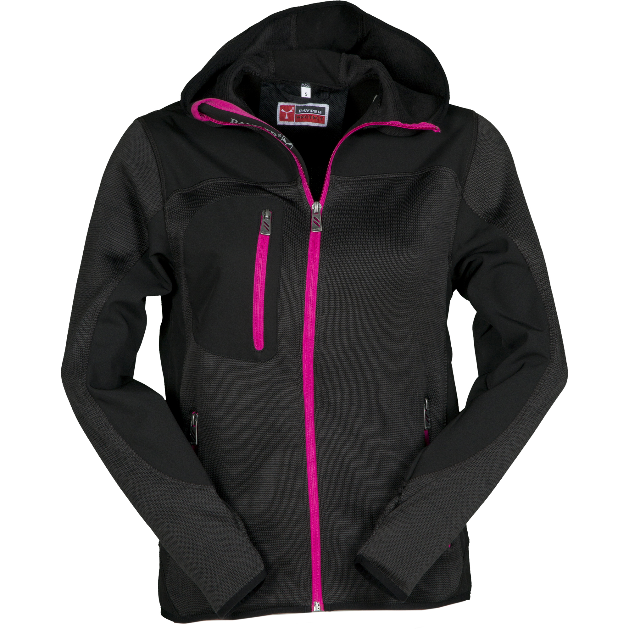 Veste ergonomique pour femme à zip long SBS avec ruban, capuche profilée avec deux coutures, fin liseré aux poignets et à la taille, deux poches latérales avec zip, une poche poitrine