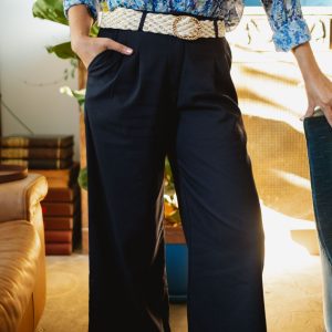 Pantalon Taille Haute à Pinces Noir Paros