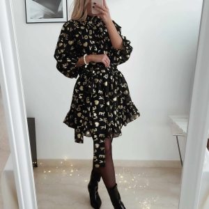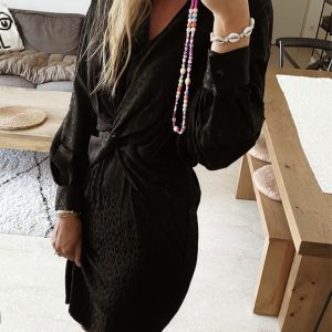 Robe Mi-Longue Satinée Noire Leopardia