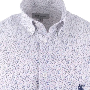 chemisette BANDE ORIGINALE léger motif bleu et rouge