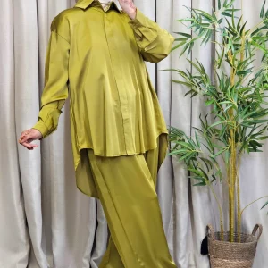 Ensemble chemise satiné vert tilleuil
