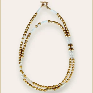 Collier long Blanc et Or