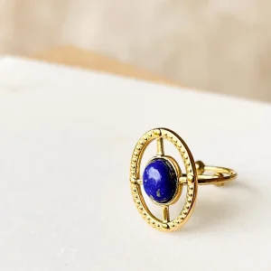 Bague pierre naturelle bleue ovale