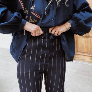 Pantalon Rayé Bleu Brodé Jules