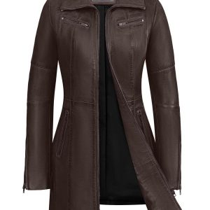 halflange leren dames jas 312 bruin Versano