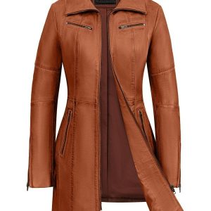 halflange leren jas dames cognac 312 Versano