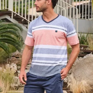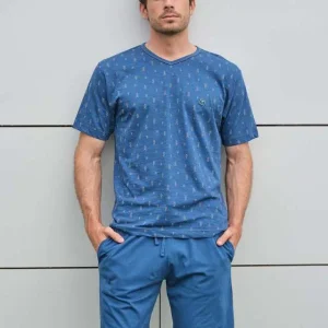 Pyjama short col tunisien EMINENCE 7V21 bleu fantaisie