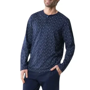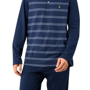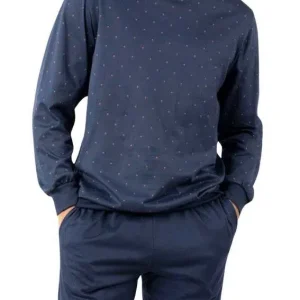 Pyjama Long forme jogging mercerisé bleu motif EMINENCE