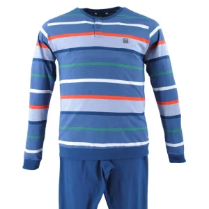 Pyjama MASSANA 100% coton rayé bleu, orange et vert