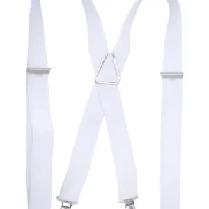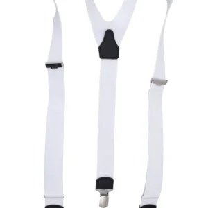 Bretelles blanches en 3 clips et embouts cuir par HUGO SPIECKER