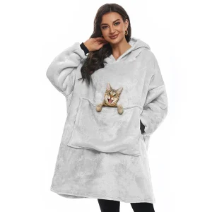 Poncho polaire chat pour femme à capuche avec poche centrale