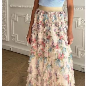 JUPE LONGUE À VOLANTS KALA ( 7 COULEURS )