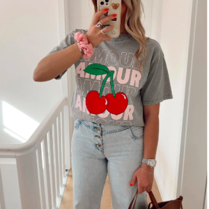 T-SHIRT LOOSE COL ROND MANCHES COURTES CŒUR ET ÉCRITURE DEVANT ET DOS LOVE IS A KISS