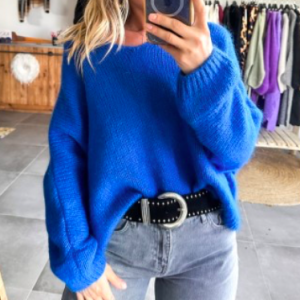 PULL LIMA BASIC COL V EN MOHAIR ET LAINE ( 60 couleurs )