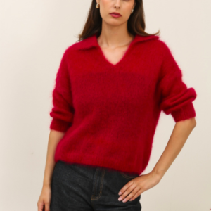 PULL NAIS COL POLO MANCHES 3/4 EN 80 % KID MOHAIR (12 COULEURS)