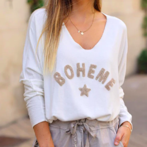 PULL BOHEME BRODE EN VISCOSE SANS LAINE ( 19 couleurs)