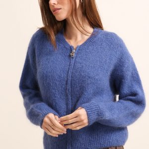 CARDIGAN NAIS COL ROND COURT ZIPPE EN MOHAIR ET LAINE (12 COULEURS)