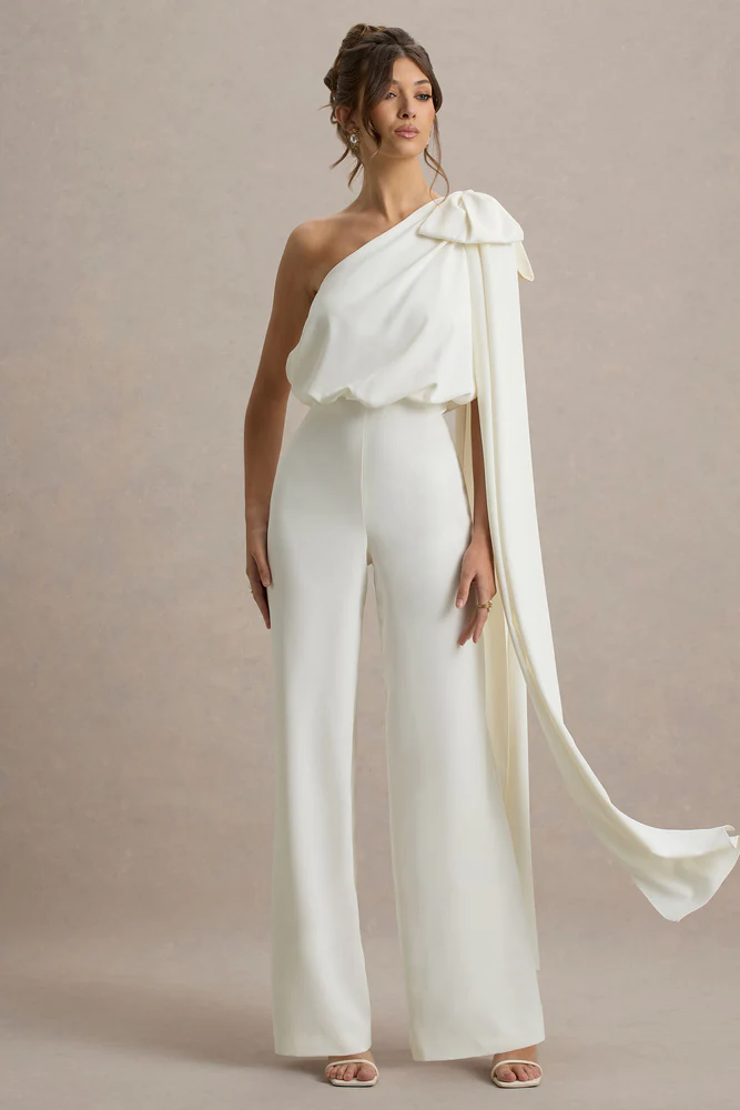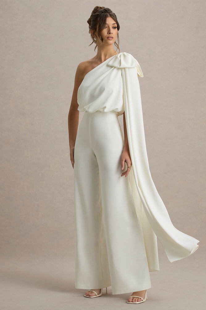 Alice – Combinaison crème à épaule asymétrique avec nœud et drapé