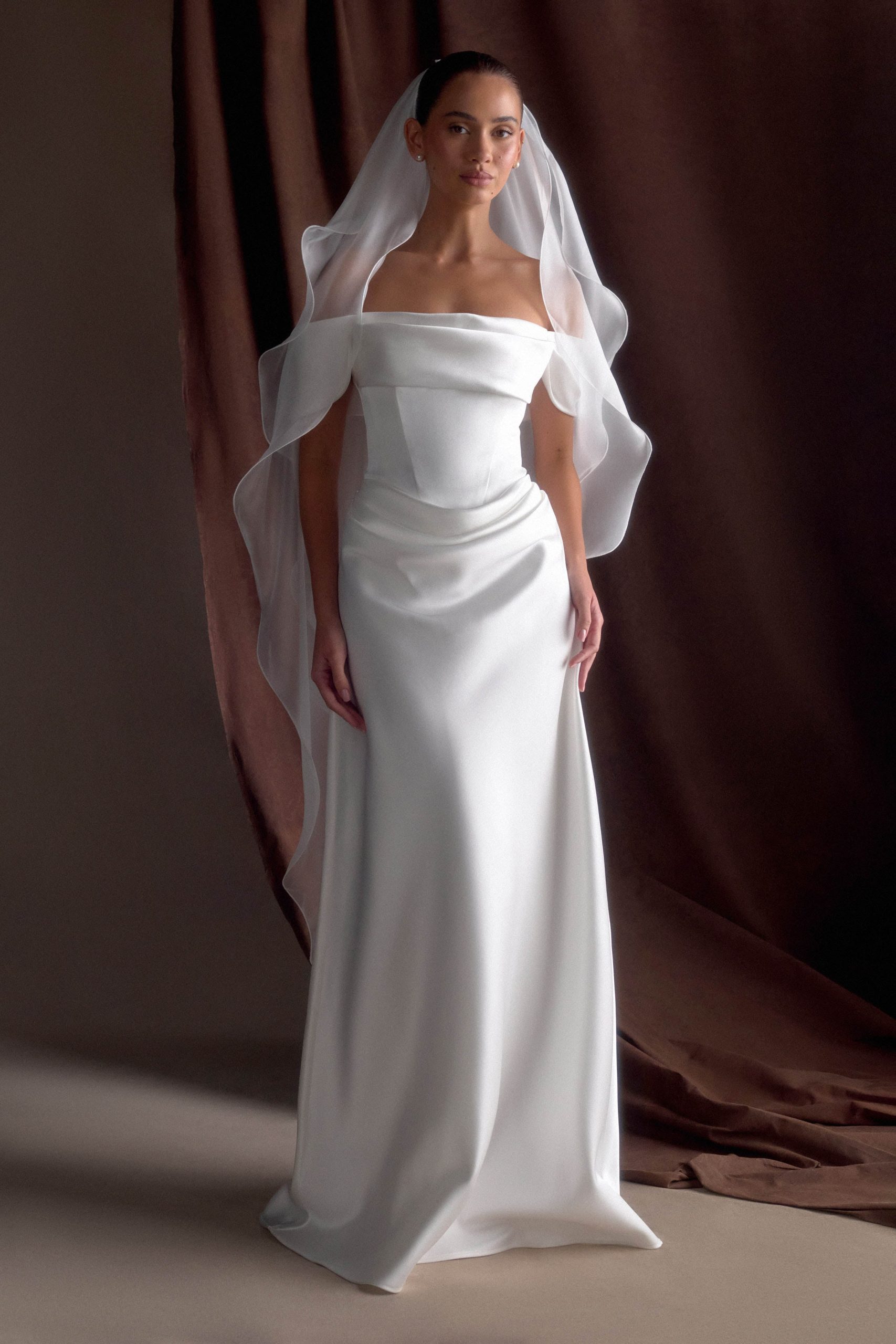 Asteria Draped Chiffon Veil – Ivory