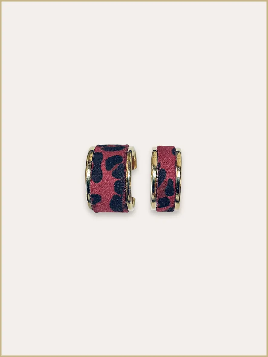 - Couleurs motif léopard : rouge framboise / marron