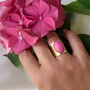 Cette bague peut se porter en accumulation avec d’autres bagues.