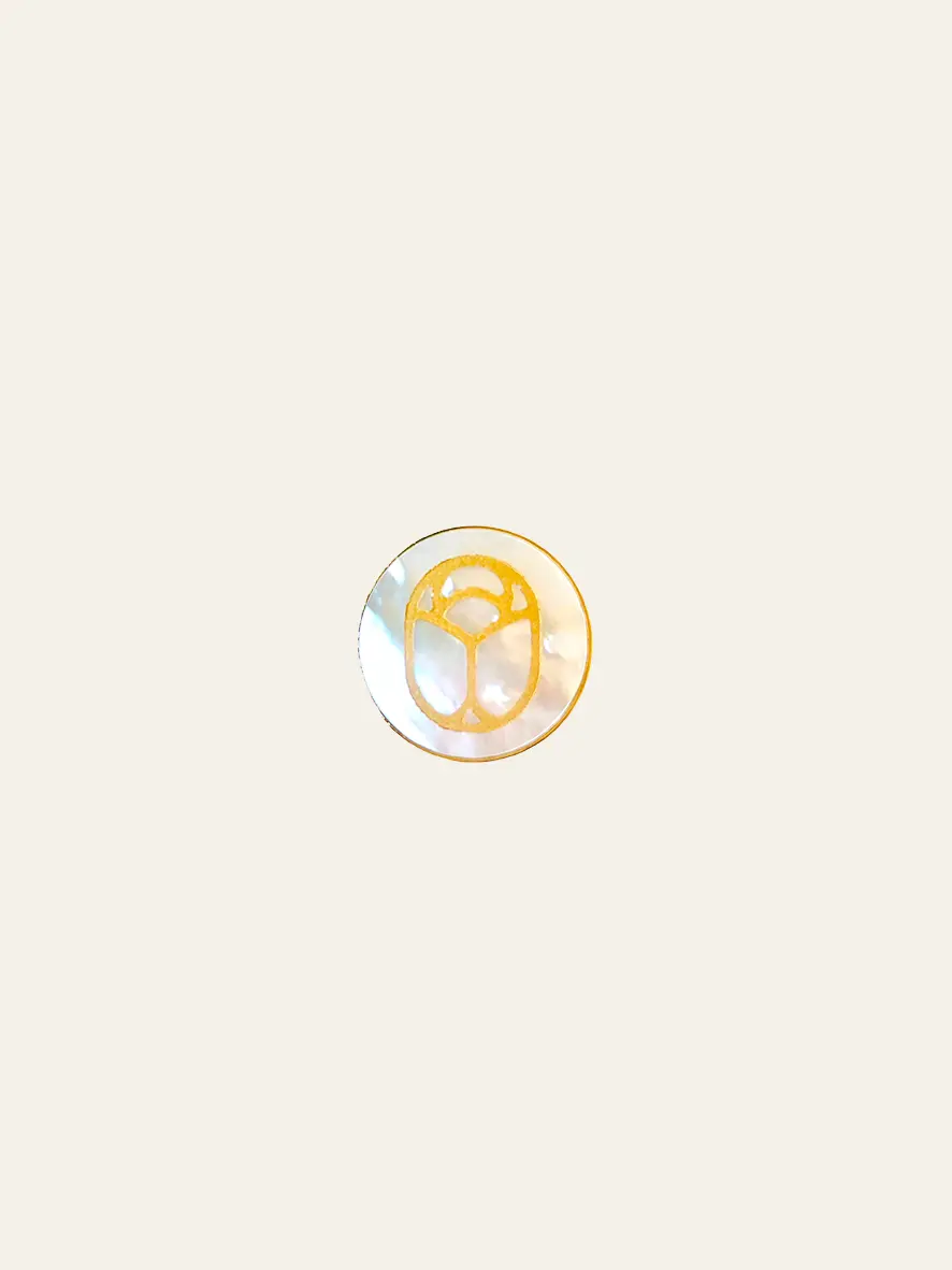 Scarabée gravé or sur disque plat de nacre