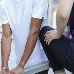 100% coton. Col avec élasthanne. Fentes latérales. Finition double aiguille.