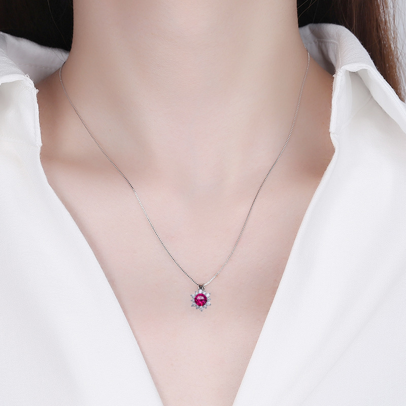 Bijoux Femme Collier en Argent Pendentif Couleur Rouge