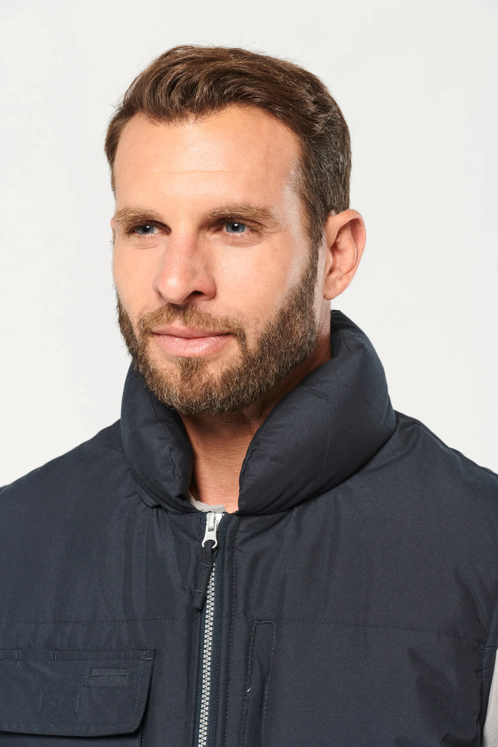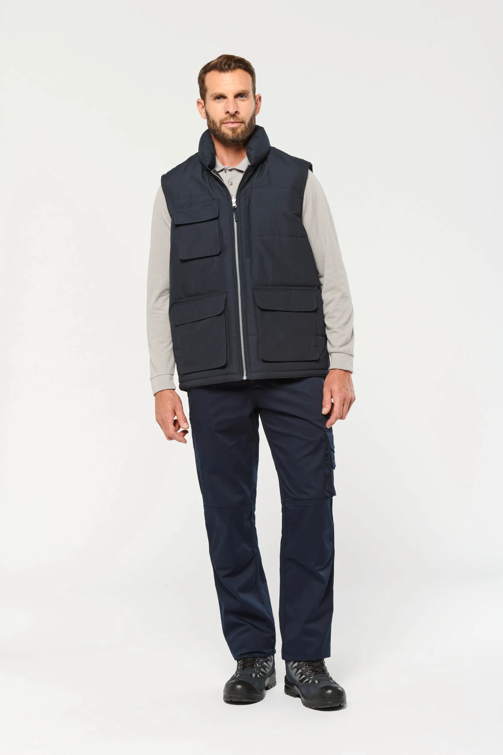 100% polyester. Microfibre enduction PVC imperméable 1500 mm. Doublure + ouate 100% polyester. 4 poches extérieures : 2 poches en bas à soufflets avec rabat auto-agrippant. 1 poche poitrine à soufflet avec rabat + passe-fil pour écouteurs. 1 poche zippée côté cœur. 1 poche intérieure zippée. Col matelassé avec passant écouteurs. Cordon de serrage au bas de vêtement. Fermeture zippée plastique argenté. Zip de personnalisation.