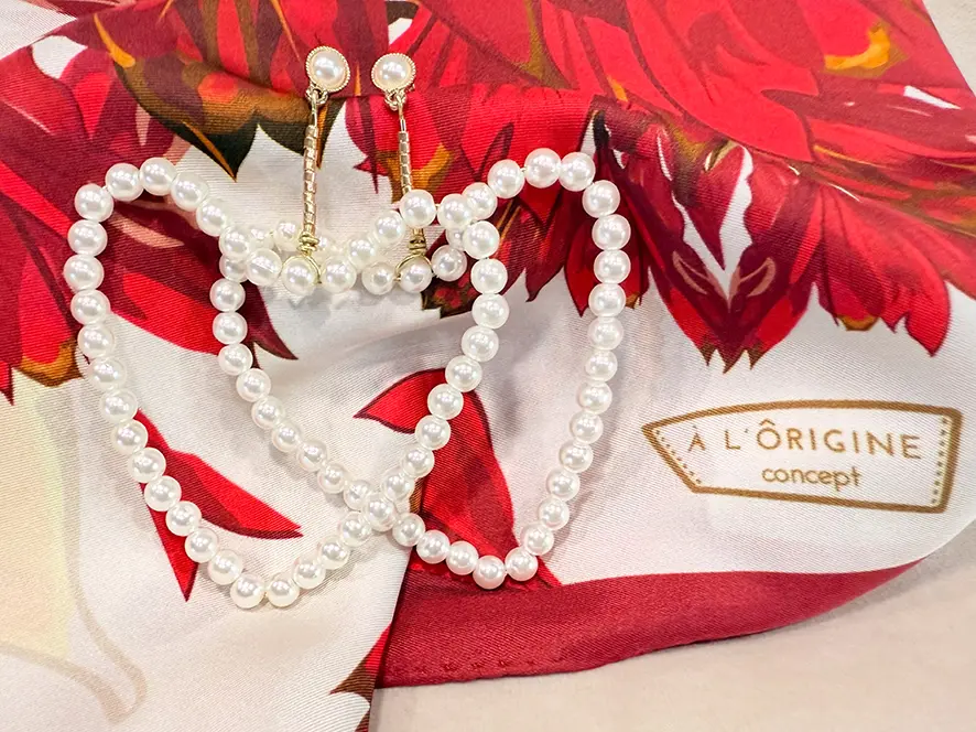 Et si vous cherchez à créer un ensemble raffiné, je vous conseille de les coordonner avec le foulard en soie Cordyline. Son motif délicat sur fond nacré s’accorde parfaitement avec l’éclat des perles, pour un duo tout en harmonie.