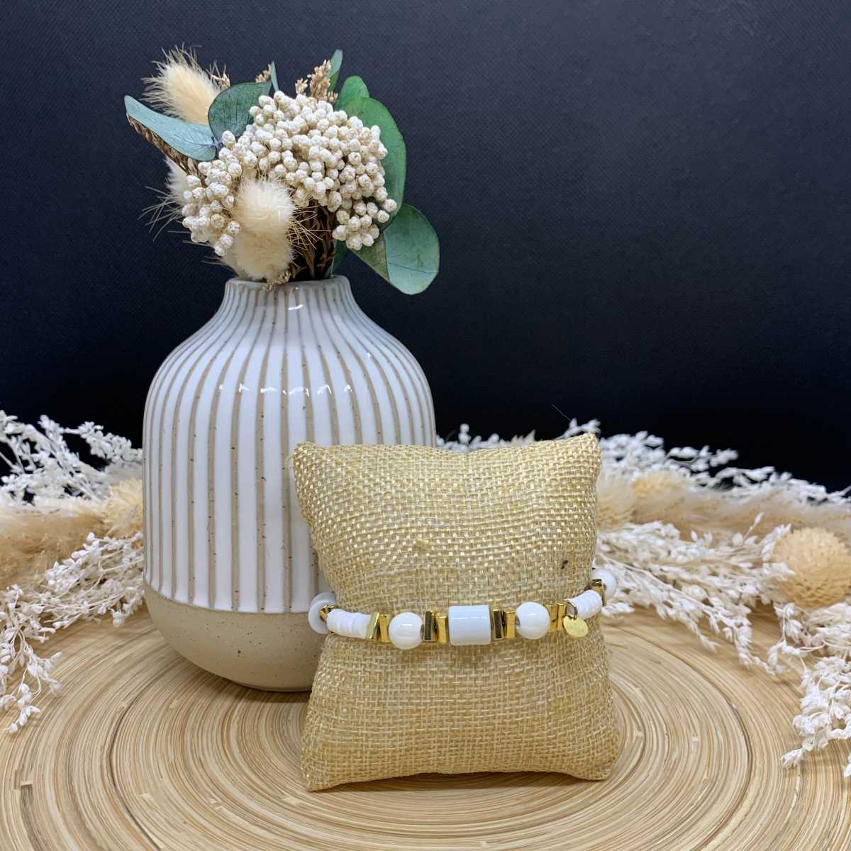 Découvrez le bracelet à perles blanches.