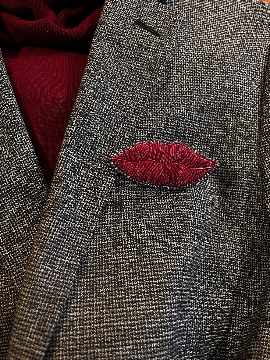 Cette broche en forme de bouche est bien plus qu’un simple accessoire, c’est l’expression de ma passion pour l’artisanat d’art.