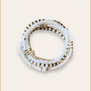 Composition : fil de cannetille frisée, jaseron métallique doré, perles, fil de soie